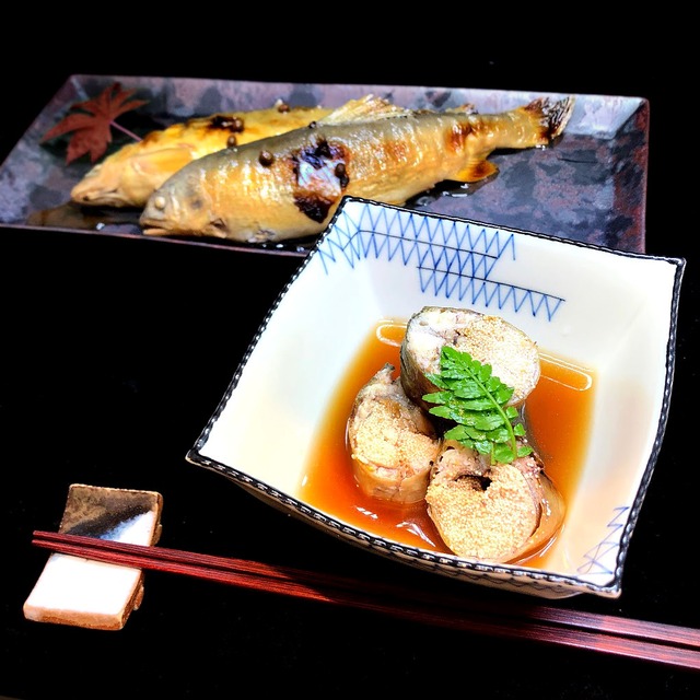 たっぷりと卵を持った鮎を中骨まで柔らかくなるよう、ふっくらと炊き上げました。 ご自宅用はもちろん、贈答品にもぜひ。 ■「特撰 子持ち鮎の山椒煮 」2尾 原材料:子持ち鮎・清酒・醤油(小麦等を含む)・砂糖・みりん・実山椒 内容量:130g~150g ×2尾 ※保存方法:5℃以下保存 ※添加物・保存料・着色料等不使用 ■「特撰和風だし 鴨のロースト 」醤油ベースの出汁仕立て×1P こちらのお品に「南蛮辛味噌」(別売)を組み合わせて、市販の麺つゆで素麺に仕立てることも。 お蕎麦や素麺の上に鴨ローストを乗せ、お出汁をたっぷりと。 南蛮辛味噌をお好みで混ぜながら。 薬味は葱や大葉、生姜。 鴨ローストに南蛮辛味噌をつけていただくだけでも、ご飯やお酒のアテにも。 ※真空パックの状態でクール便の発送になります。開封後は消費期限内でもお早めにお召し上がり下さい。 ※お歳暮やお祝いなどの熨斗、ラッピングをご希望の方はコメント欄にご記入くださいませ。