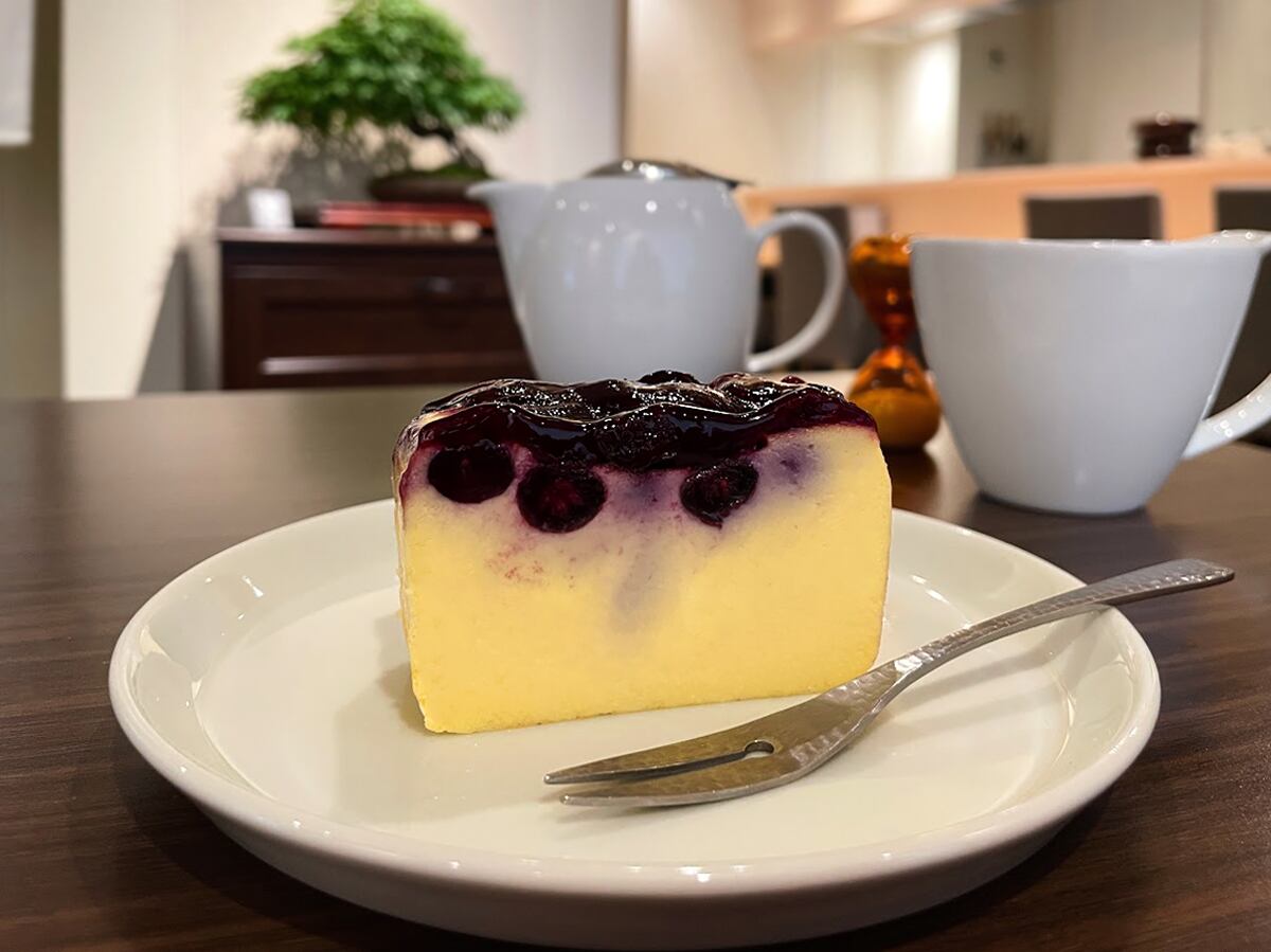 ブルーベリーをふんだんに使用し、とろけるようなカスタードクリーム調のチーズ生地と合わせ、ブルーベリーの酸味とほんのり甘いクリームが調和したフルーティな味わい。